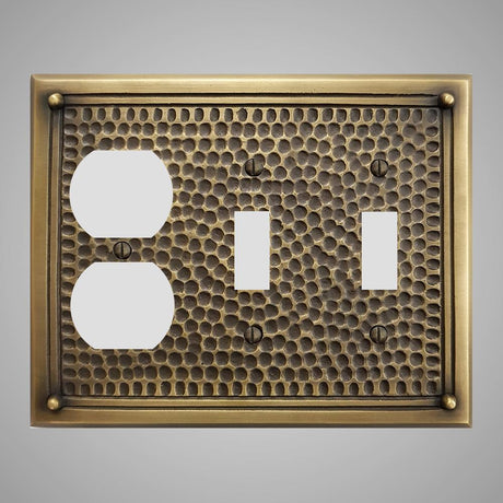 Regular price $1,795Unit priceUnavailable 2 Toggle, 1 Duplex Wall Switch Plate - Framed Hammered Design
