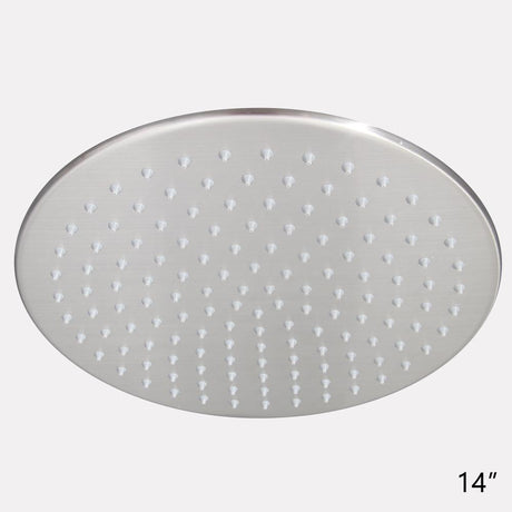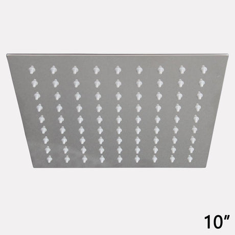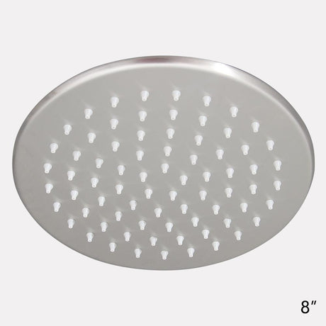 This extremely thin but incredibly sturdy round rainfall shower head includes rubber nozzles and a shimmering polished finish. The shower head swivels so water flow can be angled precisely based on the specific circumstances.