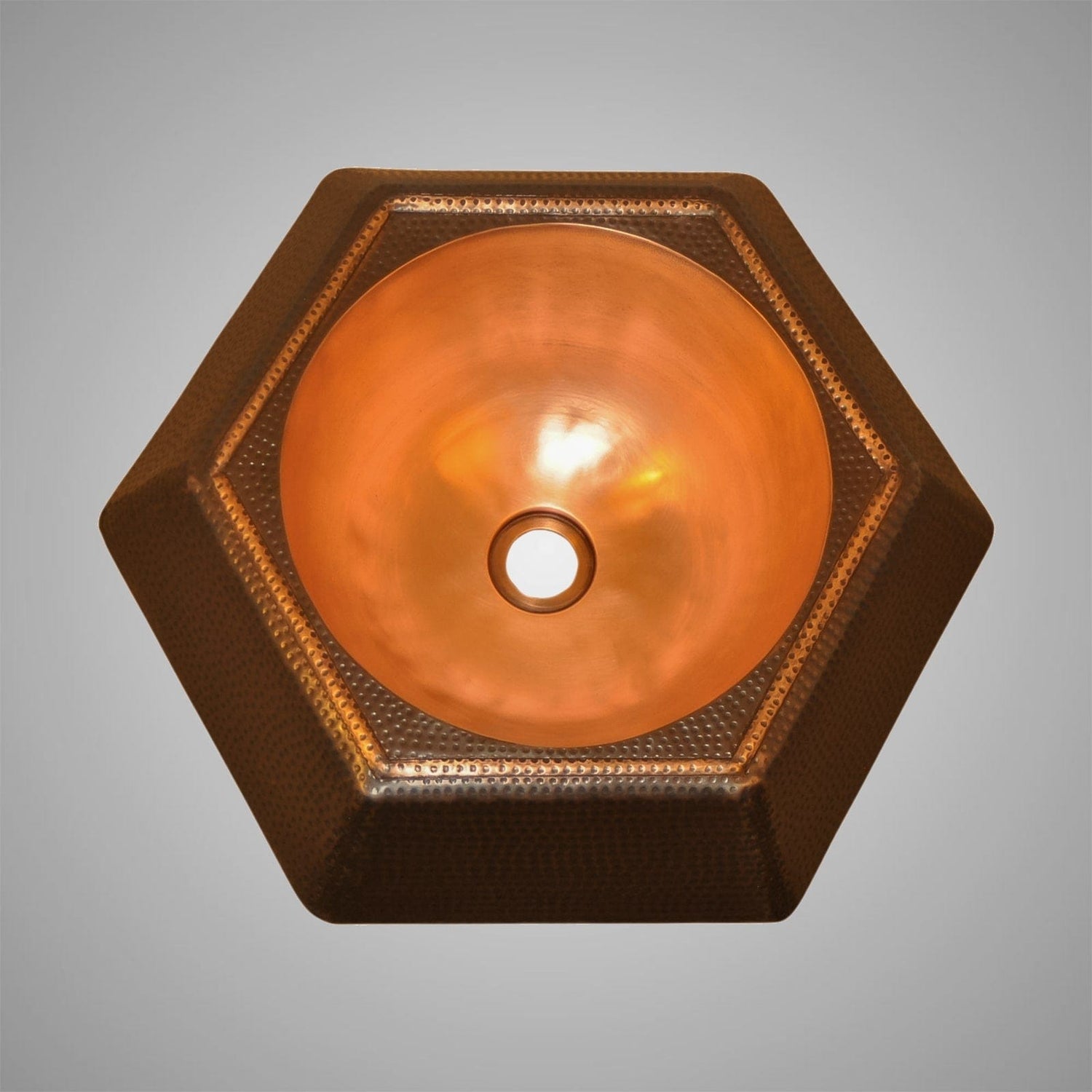 (833) 482-6828The round bowl situated inside of the hexagonal outer bowl of this vessel sink is visually pleasing and the copper itself will withstand the passage of time. Most standard bathroom drains work well with the sink.