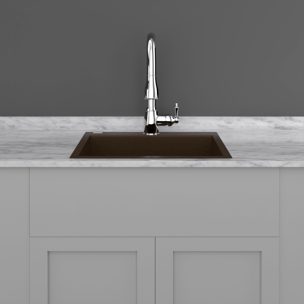 (833) 482-6828Likely to become a cornerstone of any kitchen, this compact yet high-impact drop-in/undermount sink is prepared from a durable granite composite. The sink features a standard kitchen drain hole toward the rear for use with strainer baskets and garbage disposal flanges.