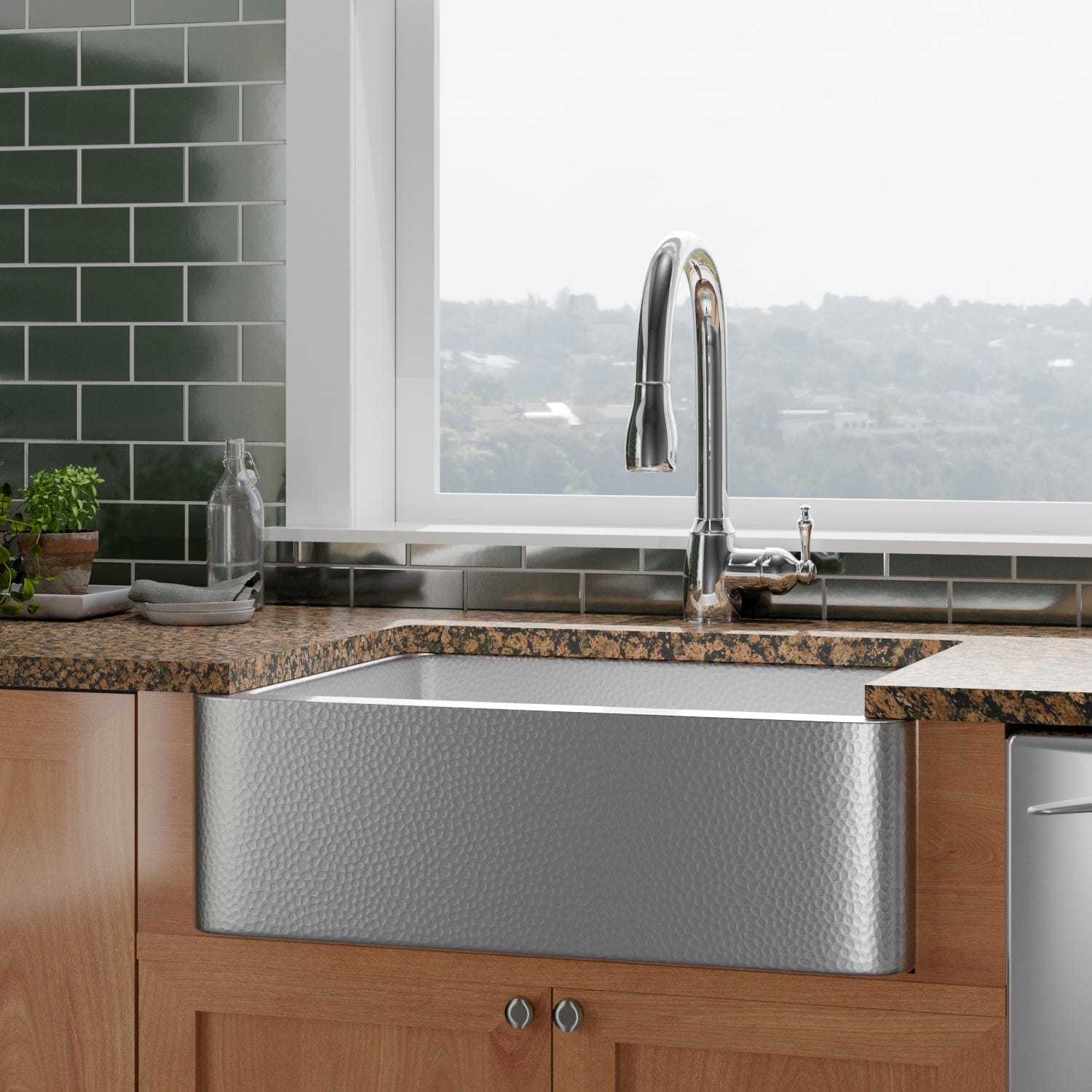 30" Glenmore Stainless Steel Farmhouse Sink - Matte Hammered Steel