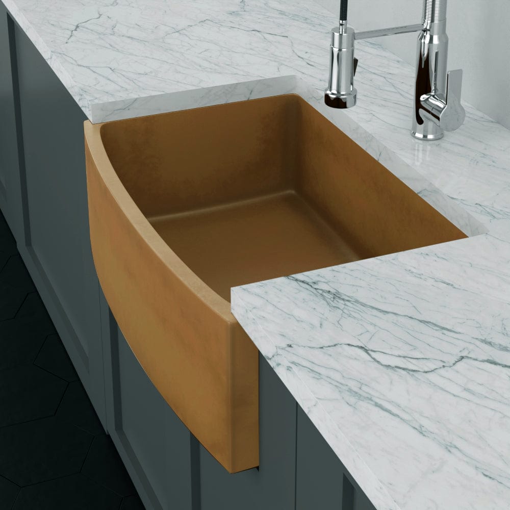 30" Schneller Cast Concrete Curved Apron Single-Bowl Farmhouse Sink - Vintage Brown