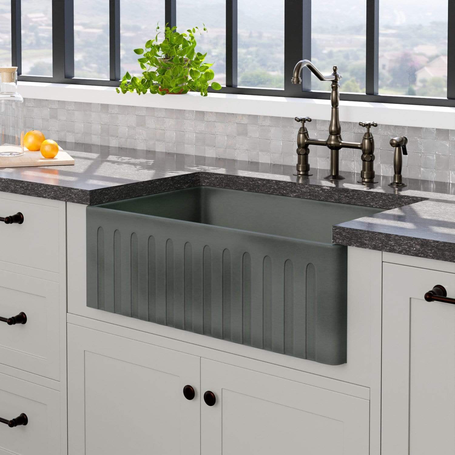 30" Veli Handcrafted Fireclay Single-Bowl Fluted Apron Farmhouse B-Grade Sink - Concrete