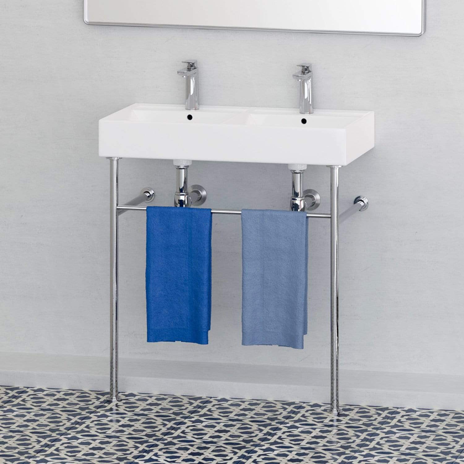 32" Elkins Double Bowl Vitreous China Console Bathroom Sink with Steel Stand