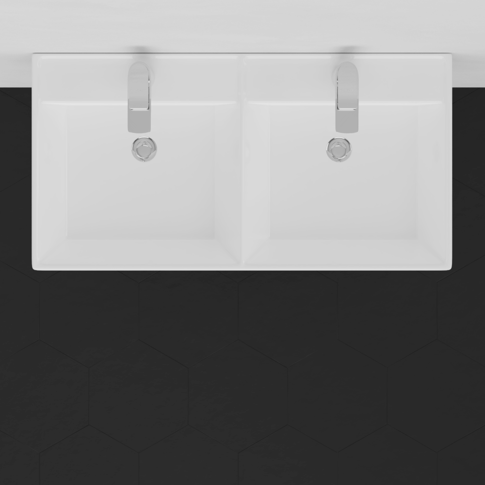 - Interior Dimensions for Both Bowls: 15 1/2" L x 11 3/8" W (Front to Back) (± 1/2")
