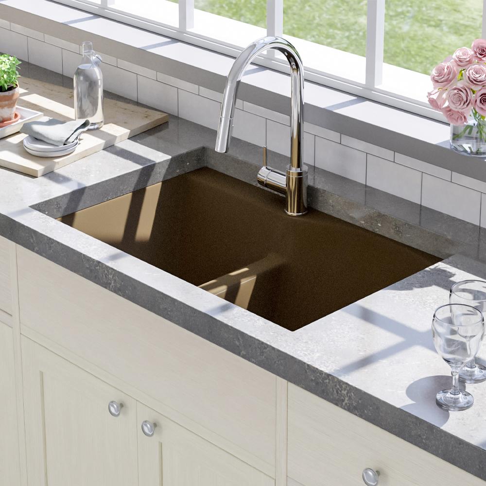 (833) 482-6828This drop-in/undermount granite composite sink strengthens any room due to its striking design and unimpeachable quality. The double-bowl sink will become an essential part of any kitchen remodeling venture.