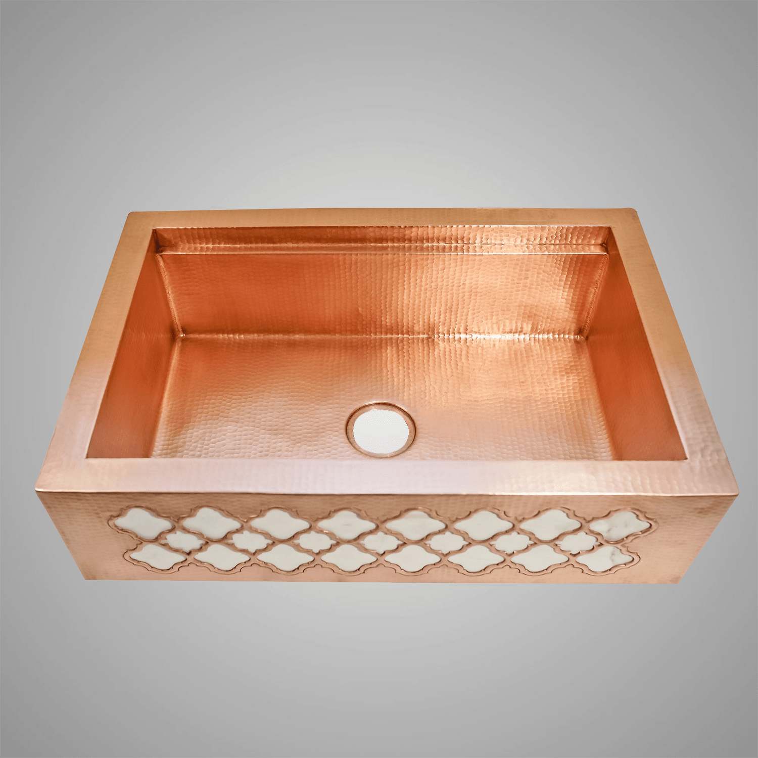 33" Halzer Hammered Copper Single-Bowl Farmhouse Sink - Moroccan Front Apron Design