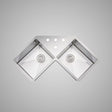 - Double-Bowl Sink with Fine-Grain Brushed Matte Finish