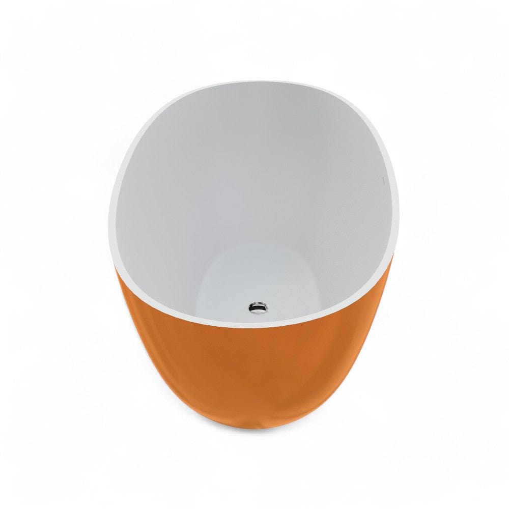 Slip into inviting comfort with the sleekly contemporary freestanding bathtub. With it gently sloped perfectly for reclining in its capacious 61" length, this tub promises hours of relaxation while delivering showstopper modern design to your bathroom remodel. Advanced lightweight pure white stone resin keeps bathwater warm and cozy, while durably resisting any scratches or staining. This is a very unique product with a white interior and a gold exterior. This freestanding tub is what bathing dreams are made of.