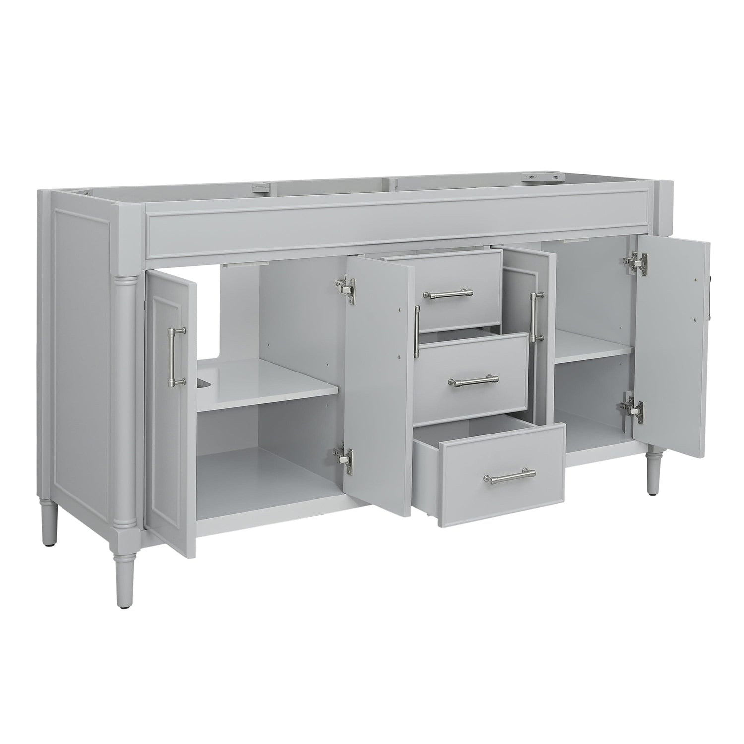 - Includes 4 soft-close doors, 3 soft-close drawers, and 2 interior shelves