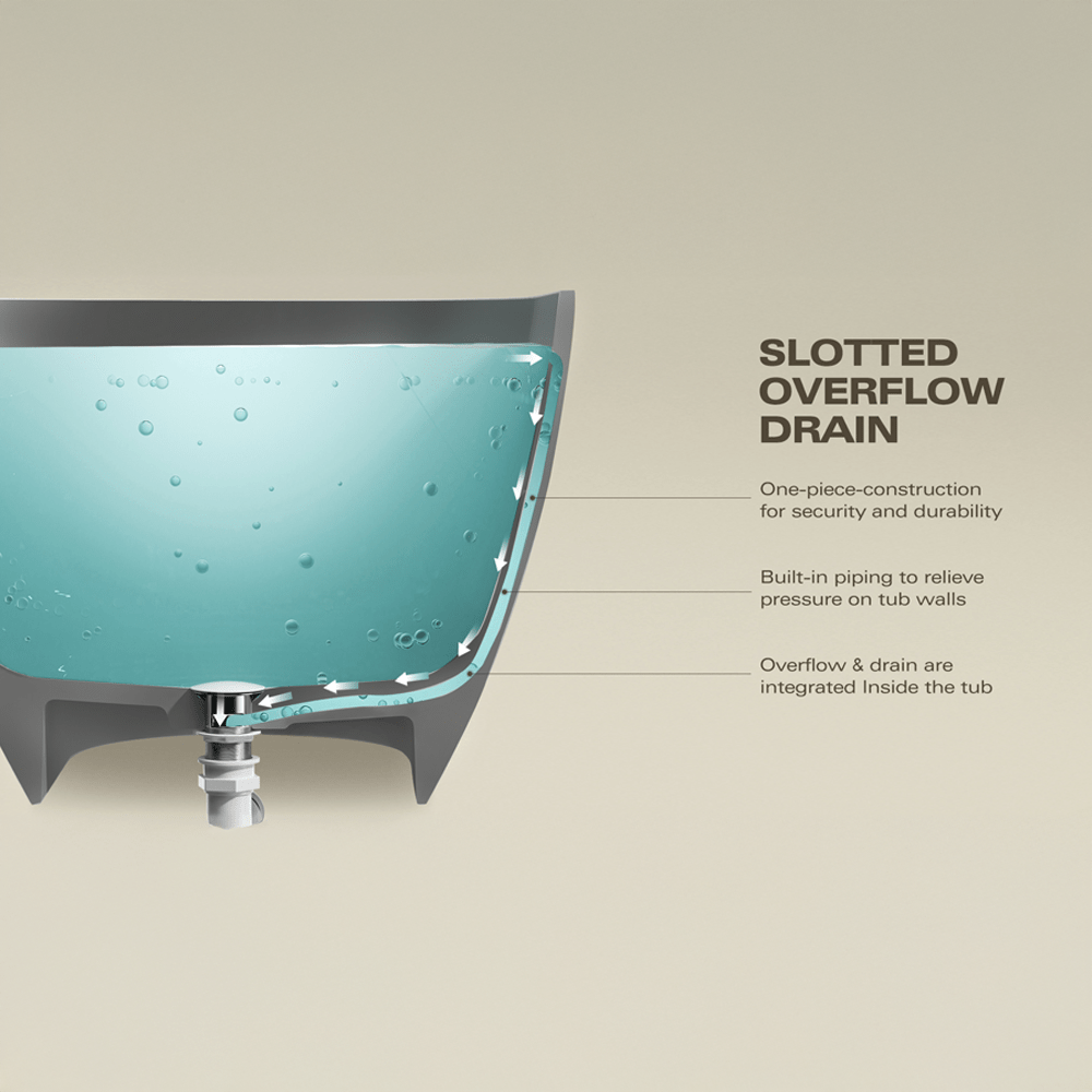 - Features Modern Integral Overflow Slot (Close-up Pictured)