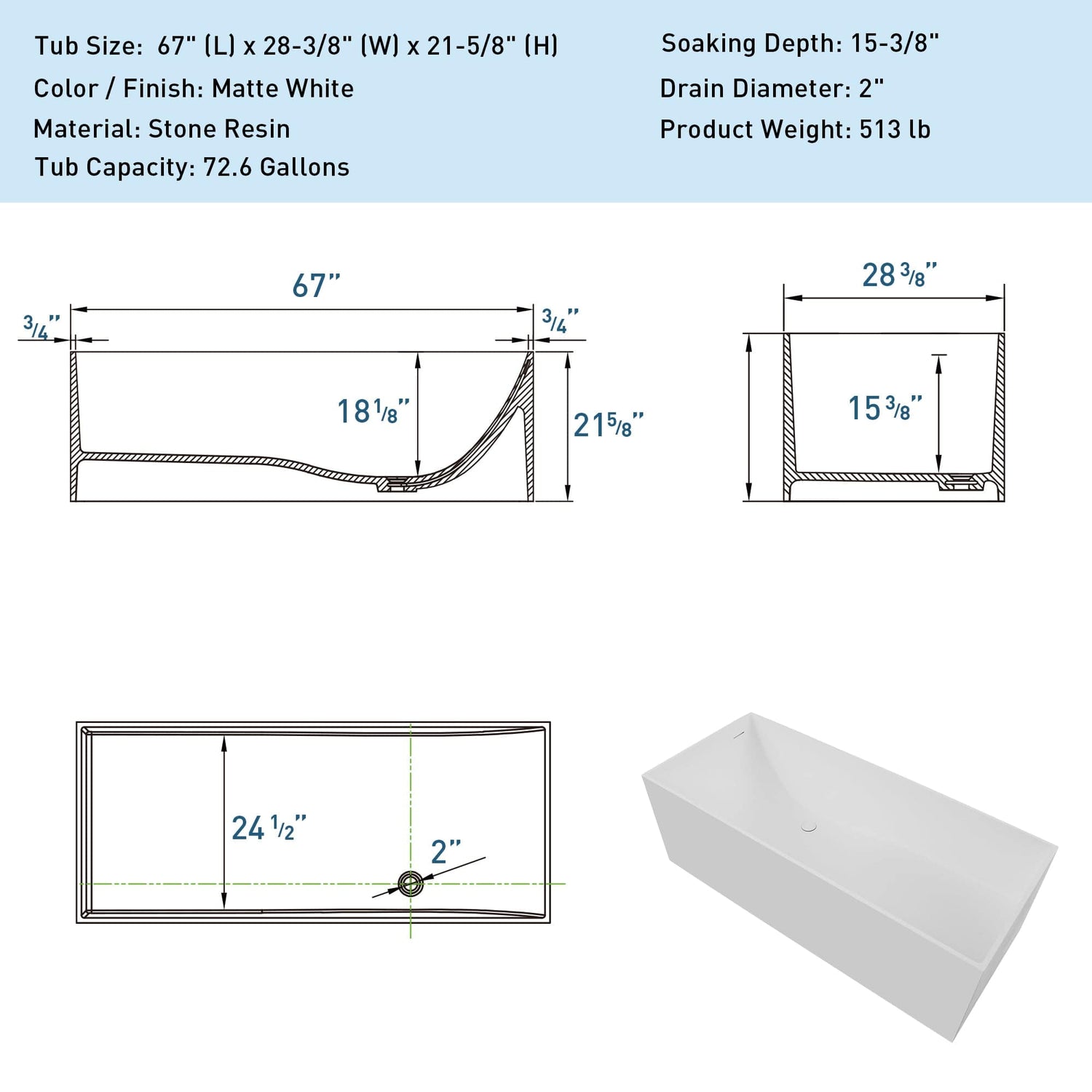 Bring the Spa Home: Wash away worries with a soak in our matte white elegant freestanding bathtub. The sleek, rectangular shaped, modern curved tub with its agile and artistic lines creates a spa-like, immersive bathing experience that combines luxury with practicality and adds to the décor of any bathroom.