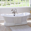 Constructed from premium cast iron and featuring a snappy double-slipper design, this bathtub is a worthy addition to any bathroom. The tub rests on a stylish pedestal and includes a pre-drilled overflow hole near the top to ensure maximum water depth.