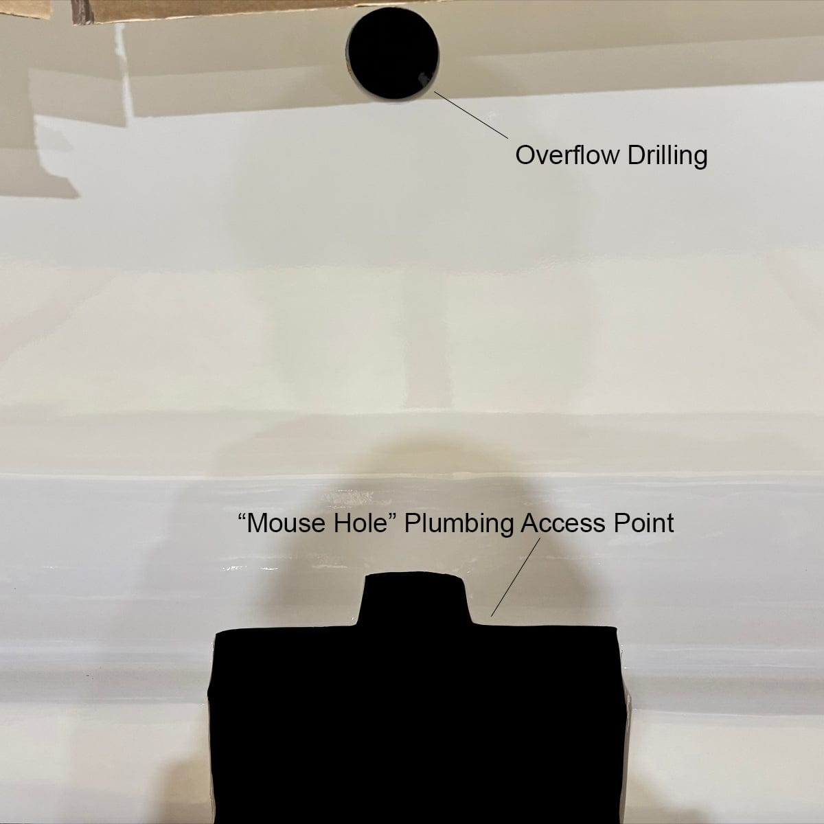 - All Cast Iron Pedestal Tubs Feature a Circular Overflow Drilling and Mouse Hole Plumbing Access Point; See Final Pic for Reference