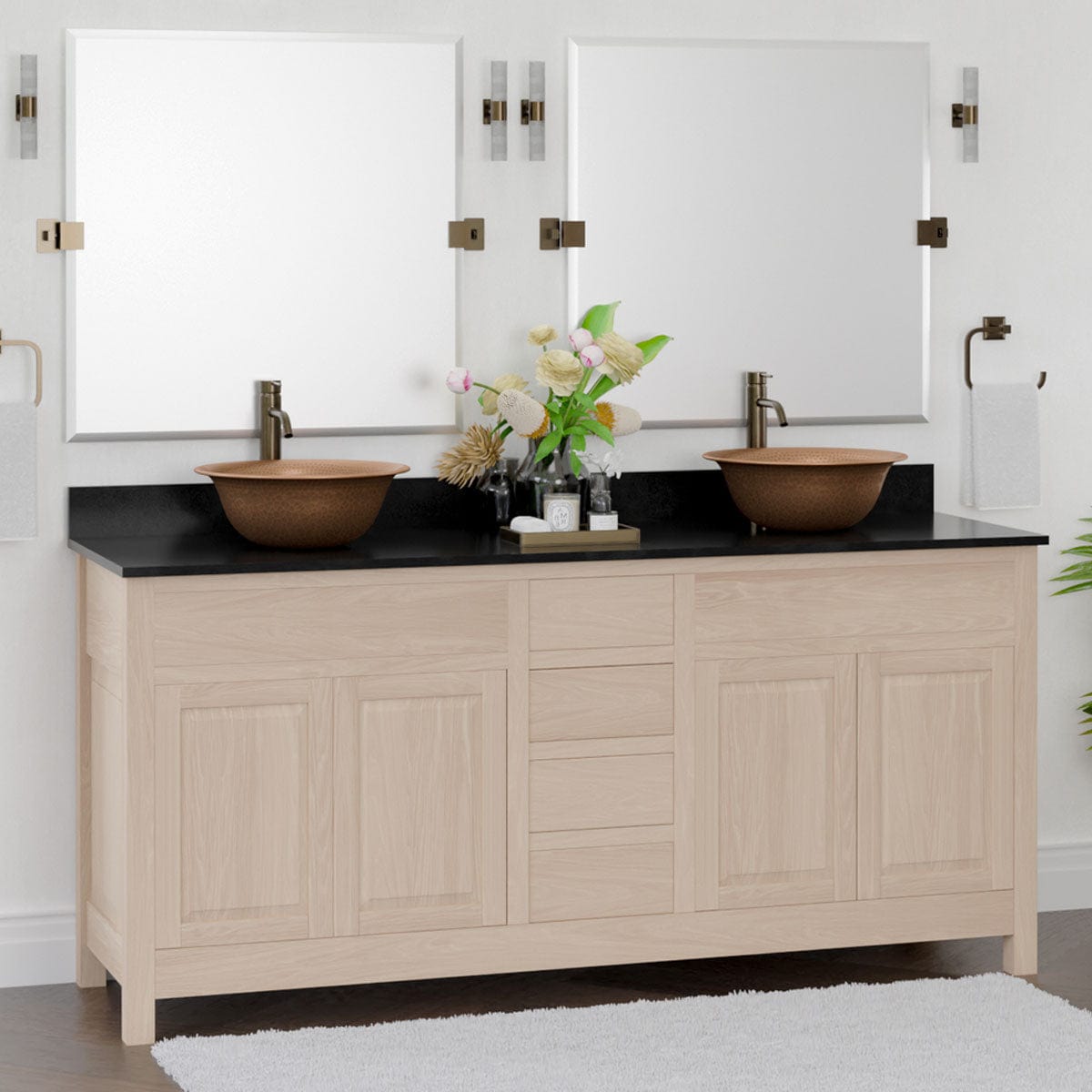 72" Vippis Unfinished Red Oak Raised Panel Double Vanity for Vessel Sinks - 34" Height