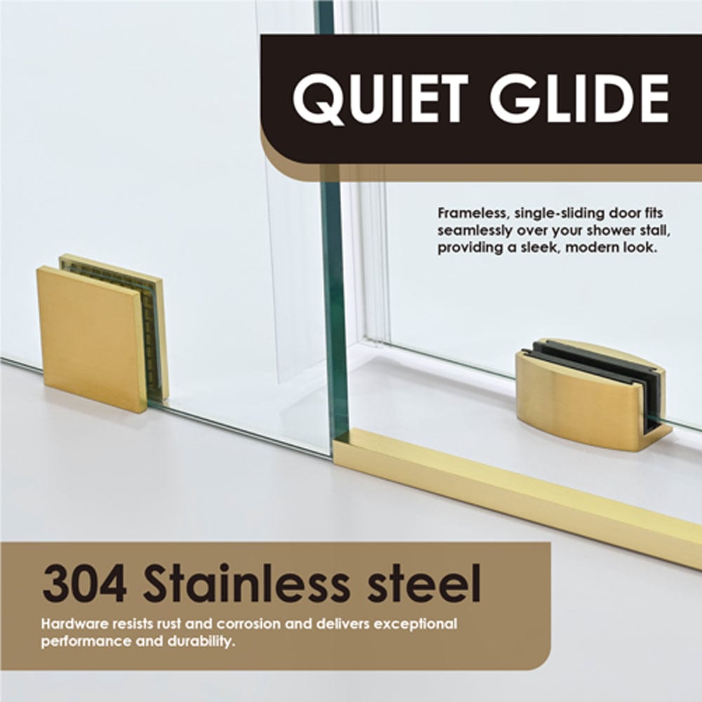 - Frameless, single-sliding door fits seamlessly over your shower stall, providing a sleek, modern look