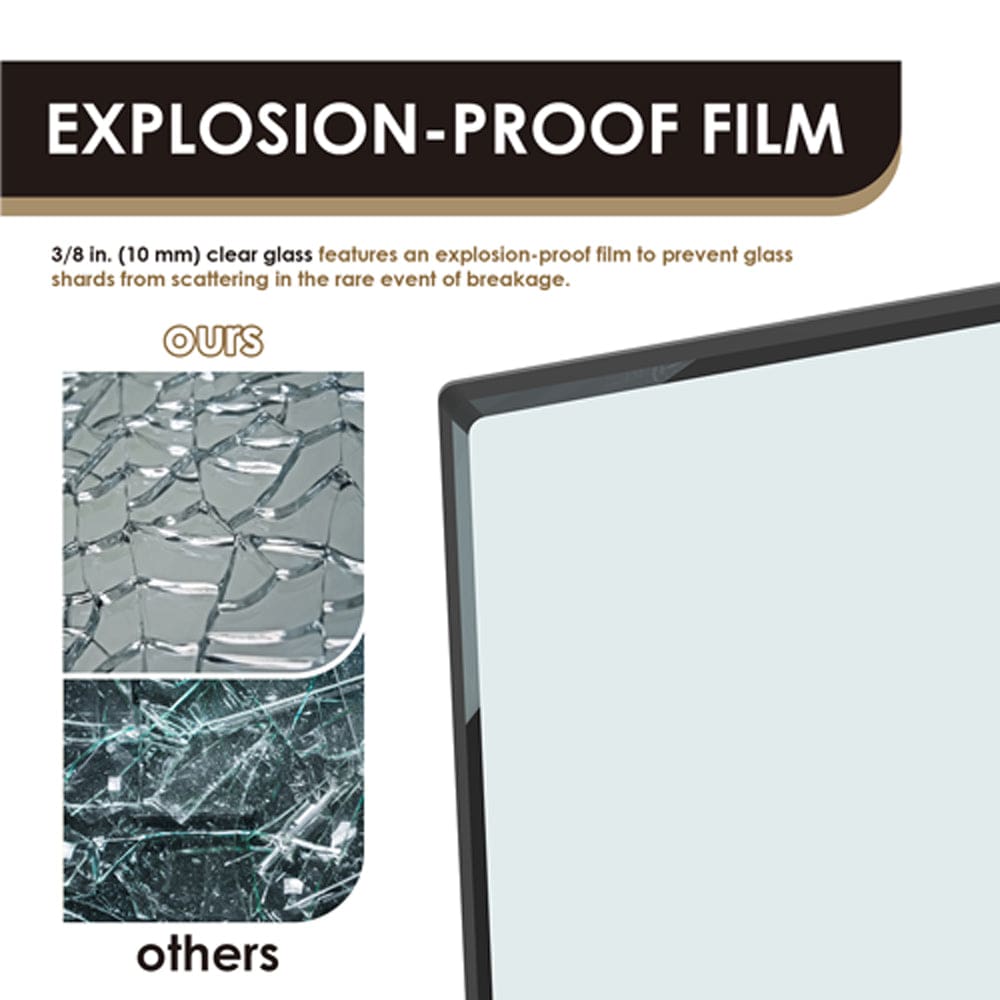 - 3/8 in. (10 mm) clear glass features an explosion-proof film to prevent glass shards from scattering in the rare event of breakage