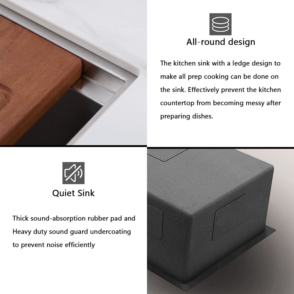 Constructed from premium 18-gauge stainless steel, our 32" Daggett Stainless Steel Single-Bowl Workstation Undermount Sink ensures durability and longevity, standing up to the rigors of daily use with ease. The sleek undermount design creates a seamless transition between countertop and sink, enhancing the clean lines of your kitchen while facilitating effortless cleanup.