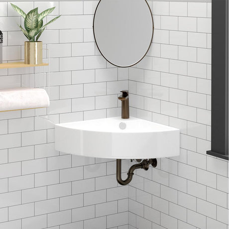 Fronia Vitreous China Corner Wall-Mount Bathroom Sink