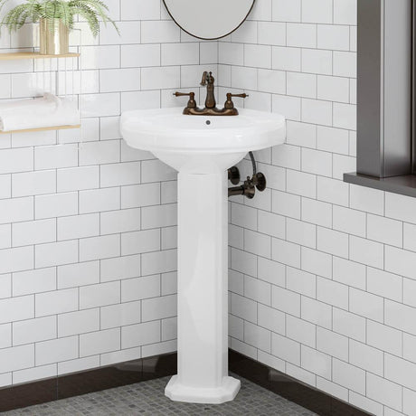 Specifically designed for corner installation, this wall-mount bathroom sink includes and overflow hole and connects to standard bathroom drains. The vitreous china bowl includes all required hardware for installation.