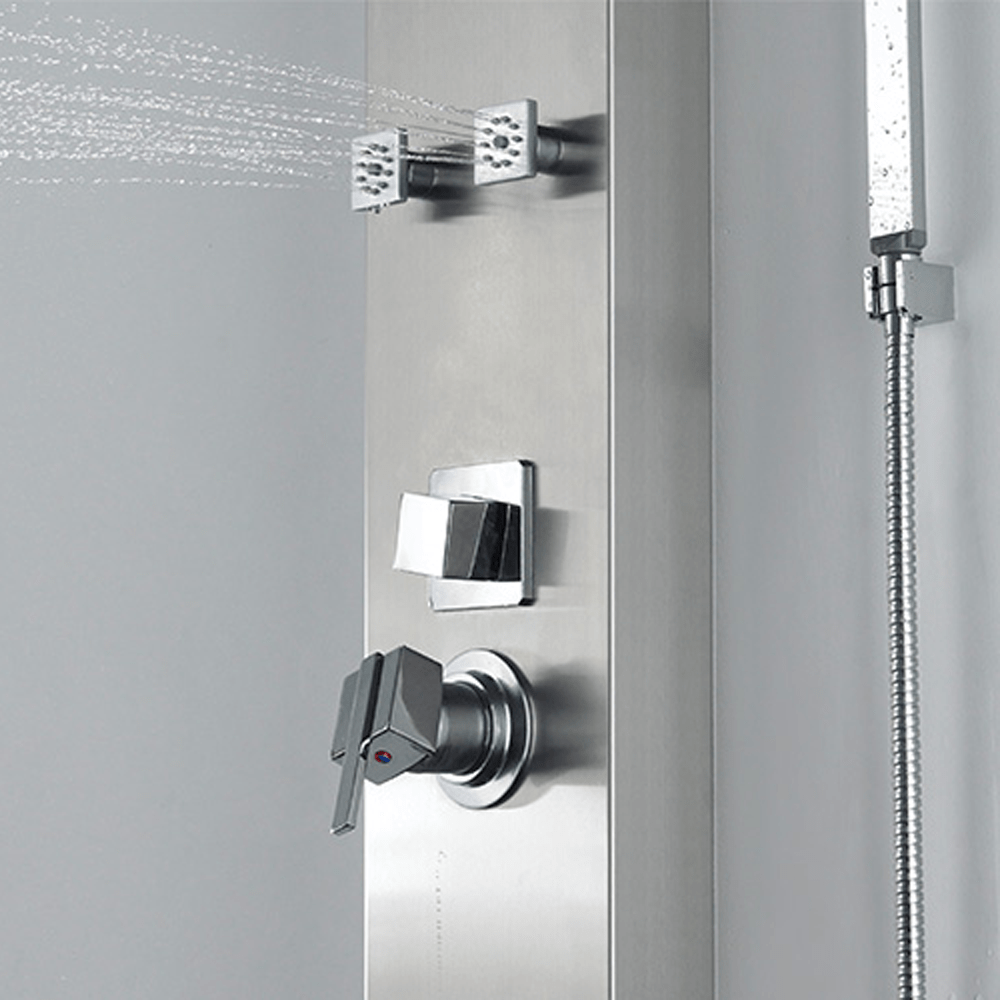 Stainless steel construction signals quality while the style differentiates this shower panel from many others. The internal pressure balance system regulates the temperature, which the exterior includes features such as body sprays, a hand shower and foot sprayer.