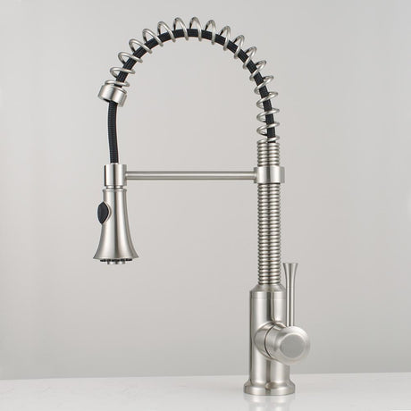 Designed for modern homes, this faucet combines sleek aesthetics with versatile functionality, making it an ideal choice for any kitchen setup. The Laurel Single-Hole Pull-Out Kitchen Faucet is a perfect blend of form and function, offering a sophisticated look and practical features that enhance your kitchen's efficiency.