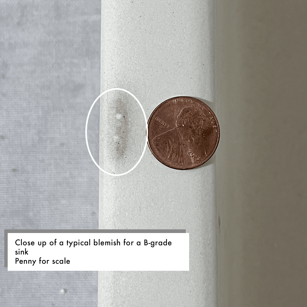 - Sinks have slight imperfections that are typically hidden from view after installation; Examples of small imperfections shown in photos
