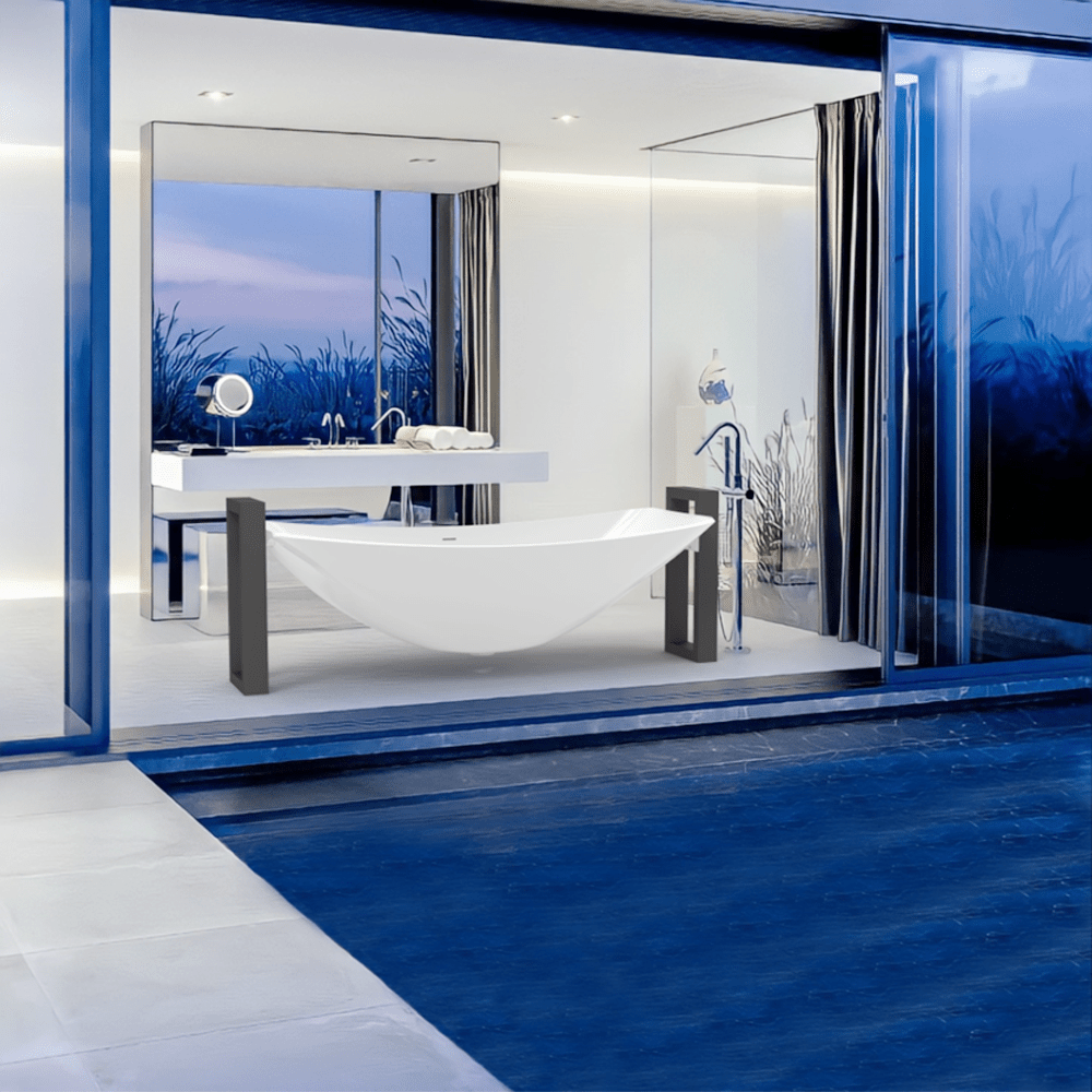 This luxury hammock bath design boasts as the most comfortable extra deep soaking hammock bath in the world with its unique solid surface material and plush hammock style.This one of a kind luxurious hammock modern bath appears to be floating in air allowing you to escape your day to day life. With resort lifestyle living in mind this innovative design has the bath volume to allow you to lie back comfortably and relax fully immersed in water.Its indulgent large bath shape brings unique comfort and style to a bath whilst retaining functionality. The style provides a striking piece of bathroom furniture that is both beautiful and practical.