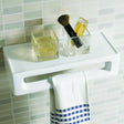 Constructed from powerful vitreous china, this bathroom shelf holds several commonplace household accessories. The majority of the front is open and can thus support storage of multiple towels as well.