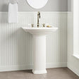 The regal vibe associated with this vitreous china pedestal sink will enhance any bathroom. Detailed in design, you can also pick from more than one faucet drilling option.